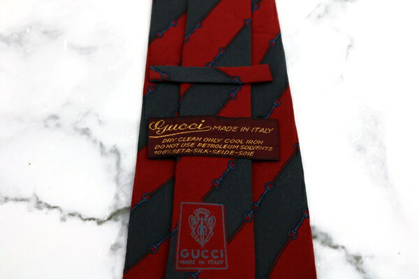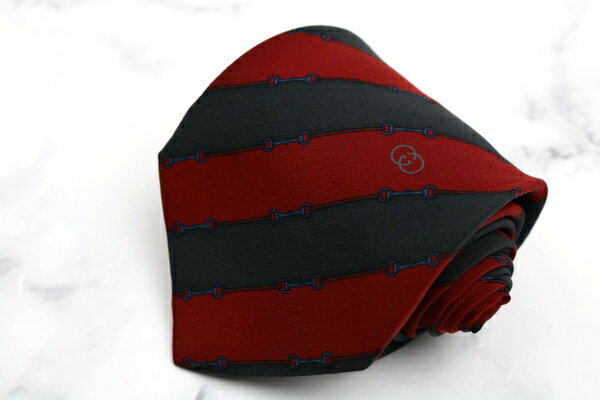 グッチ GUCCI ビット GGマーク ロゴ クレスト紋章 イタリア製 ストライプ柄 レッド シルク ブランド ネクタイ 送料無料 【中古】