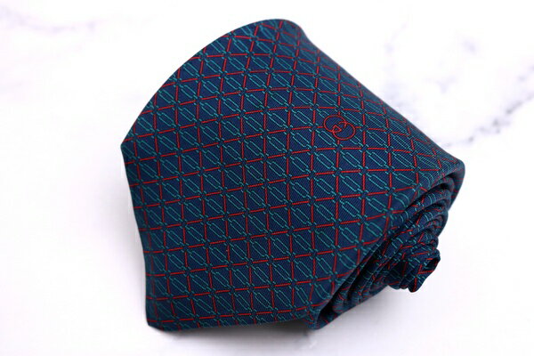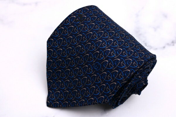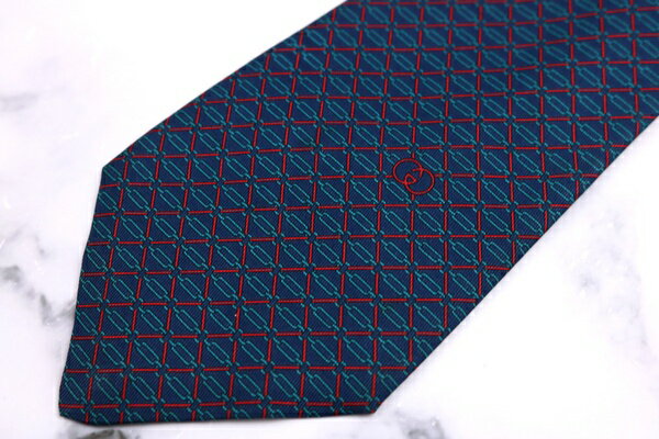 グッチ GUCCI チェーン柄 GG クレスト紋章 イタリア製 チェック柄 ネイビー シルク ブランド ネクタイ 送料無料 【中古】