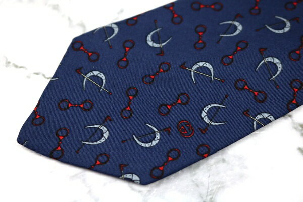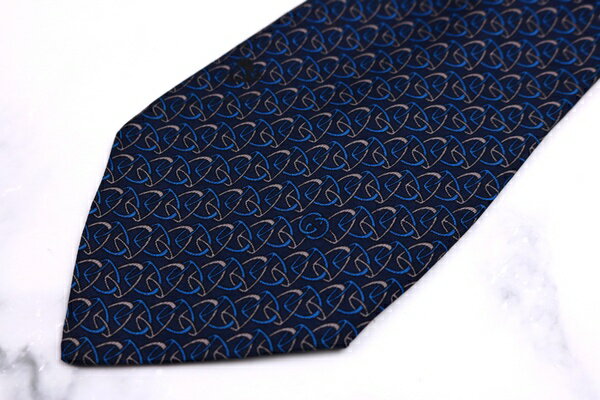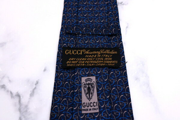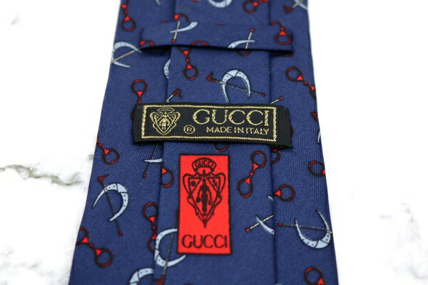 グッチ GUCCI 馬蹄柄 クレスト紋章 イタリア製 総柄 ネイビー シルク ブランド ネクタイ 送料無料 【中古】